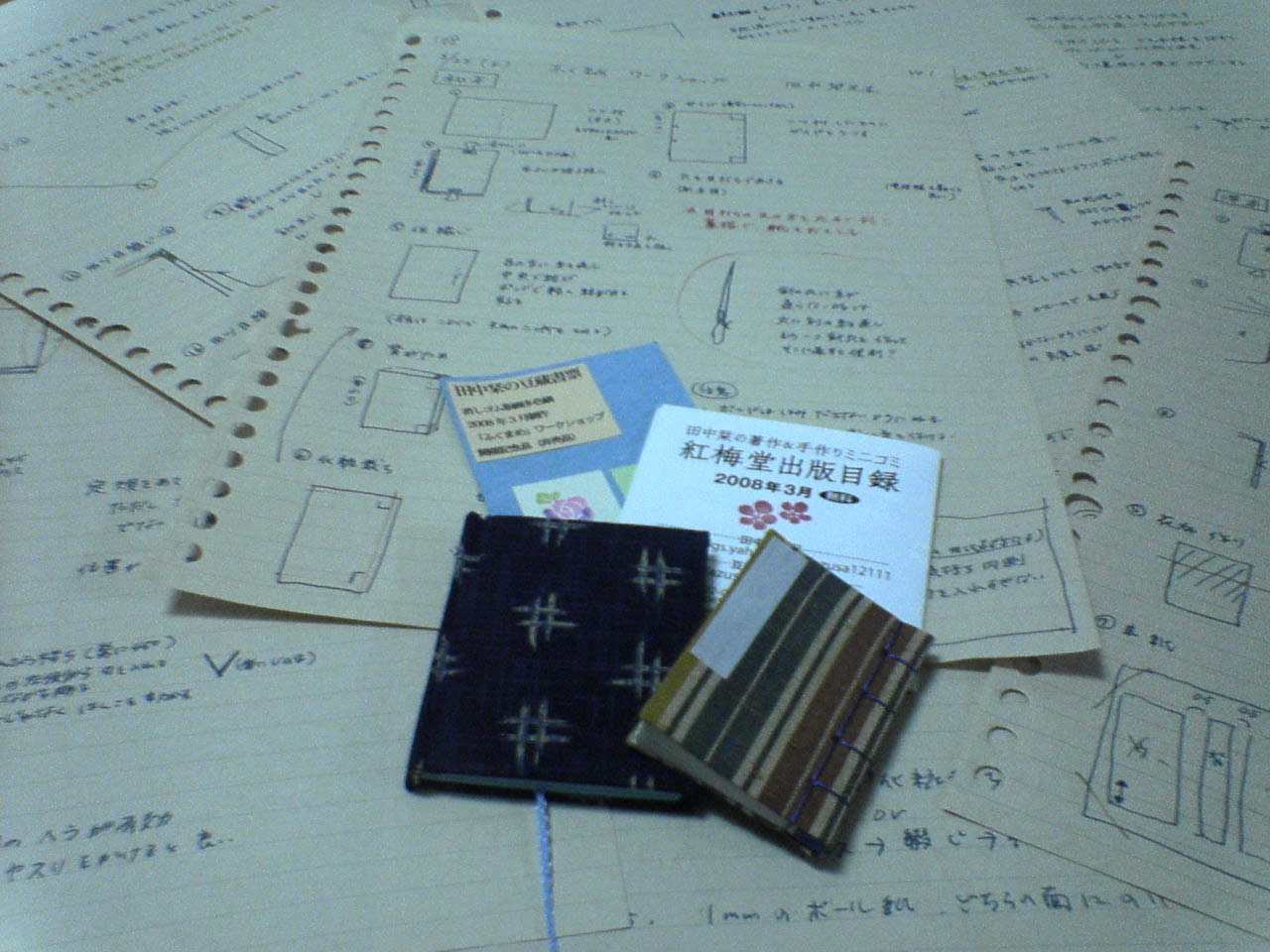 携帯屋に駆け込んでみたものの、機械音痴故に、選べませんでした。 メールは受信しているものの、お返事が出せません。 とりあえず、通話機能は何とか生きているようなので、しばらくこのままです。 ご迷惑をおかけいたしますが、何卒宜しくお願いいたします。 携帯電話を買い換えたら、改めてご報告致します。 取り急ぎ、ご連絡まで。 以前からお気に入りに入れていて、足繁く通っていた胡桃の椅子さんの 作品を手に入れることが出来た。 しかも、大物を! それが、この本棚と豆本のセットである。 胡桃の椅子さんについて私が語るのは野暮なので、URLをご紹介。 この方にかかれば、作れないものは何もないんじゃないかと思う。 どの作品もとても美しい仕上がりで、兎に角うっとりなのだ。 しかし、私は本棚と豆本セットに目が眩みすぎて、アリスの マメトランプ帳を買い逃してしまった。 どうしようかとグズグズ悩んでいる間に完売していたのだった。 やっぱり買うんだったと思ったときには後の祭。 こんなステキなものを手にしておきながら、何故あの時一緒に マメトランプ帳を買っておかなかったのかと後悔し続けるに違いない。 胡桃の椅子 http://www.kuruminoisu.shop-site.jp/homeframe.htm 3月22日(土)にふくまめ会場内で行われたワークショップに参加した。 講師は『古本屋の女房』(平凡社)の著者でもある田中栞先生。 田中先生のご自宅で不定期に開催される「1日教室/製本フルコース」に 参加したいと思い続けていたので、福岡でお会いできてとても嬉しい。 しかし、ゆっくりご挨拶する間もなく、いきなり講習は始まる。 だって、2時間で1冊の豆本を作るのよ。 いくら材料をあらかじめカットしてくださっているからって、2時間で1冊は驚異的。 しかも、とても本格的なの! 参加する前は、2時間で1冊できるのかしらと思っていたが、本当に出来しまった。 だからといって、先生に手伝って貰う訳ではない。 魔法にかけられたように、自分の手で作り上げていくのだ。 これが、もう、快感。 先生が示されるお手本や説明が兎に角的確で、一人の落伍者も出ず、 気が付けば豆本が出来ているの。 参加者の中で、多分私が一番不器用だったと思うが、それでも美しく出来た。 凄く苦手な化粧裁ちや糸かがり、溝付けだってスムーズで、あら出来ちゃった?! ってな感じ。 先生は兎に角大盤振る舞いで、作り方の本では分からないようなコツや裏技を 惜しみなく教えて下さる。 先生が時間やお金をかけて体得したであろう技を、本当に惜しみなく教えて下さる。 しかも、特殊な道具を使わないで出来る方法で、だ。これは凄くありがたい! それだけでなく、豆本を作る作業の合間に、本の構造やあり方、時にはご家庭の 秘話までお話して下さる。 そして、最後、本をプレスしている間に、折り紙豆本まで作っちゃうのだ。 それも2つも!これを2時間でやってしまうだなんて、神業だ。 作って、説明して、喋って、先生本当にお疲れ様です!と思っていたら、 先生は知らない間に、ワークショップの様子の撮影までされていた。 はぁ~、本当に凄い、凄すぎます! 勿論、私は写真なんか撮る暇があろうはずもなく、帰宅後教えて頂いたことを忘れないよう メモするだけで手一杯であった。 多分、穴だらけであろうと思うわれるそのメモも、ルーズリーフ8枚分もあった。 画像はワークショップの様子を撮影できなかったので、私が書いたメモと作った豆本 そして、お土産にいただいた田中栞先生特製の豆蔵書票セットのセットである。 この豆蔵書票が、これまた凄くて、何と消しゴムはんこの多色刷りなのだ。 こんな小さなものをどうやって?!と、うなる一品である。 本当に、本当に、何から何まで凄いワークショップであった。 洋本はワークショップ終了後、48時間はプレス。絶対に開いちゃダメ!とのことだったので、 本日、初お披露目である。 改めて教えて頂いた豆本を見て感動! 兎に角、私が作ったとは思えないくらい、美しい仕上がりなのだ。 参加できて本当に幸せだと、改めて噛み締めている次第である。 田中栞日記 http://blogs.yahoo.co.jp/azusa12111 田中栞先生の本への情熱溢れるブログです。 「ふくまめ」は今日で終わり。 あっという間の4日間でした。 楽しいひと時でした。 来て下さった皆様、ありがとうございます。 小人堂の豆本をご覧下さった皆様、 お手にとって下さりありがとうございます。 見ていただけるだけで、嬉しいです。 そして、豆本をお買い上げ下さった皆様、 本当にありがとうございました。 主宰者の古賀様、ワークショップをしてくださった田中栞先生 ギャラリーセレストの皆様、大変お世話になりました。 ただ、ただ、感謝です。 会場の様子や購入した本、ワークショップについては 後日、必ず! (いつもは有限不実行ですが、今回は必ず) しばしお待ち下さい。 画像は頂いたお花。 そう、お花まで頂いたのですよ。 来て頂いただけでも感謝なのに。 申し訳ないと思いつつ、凄